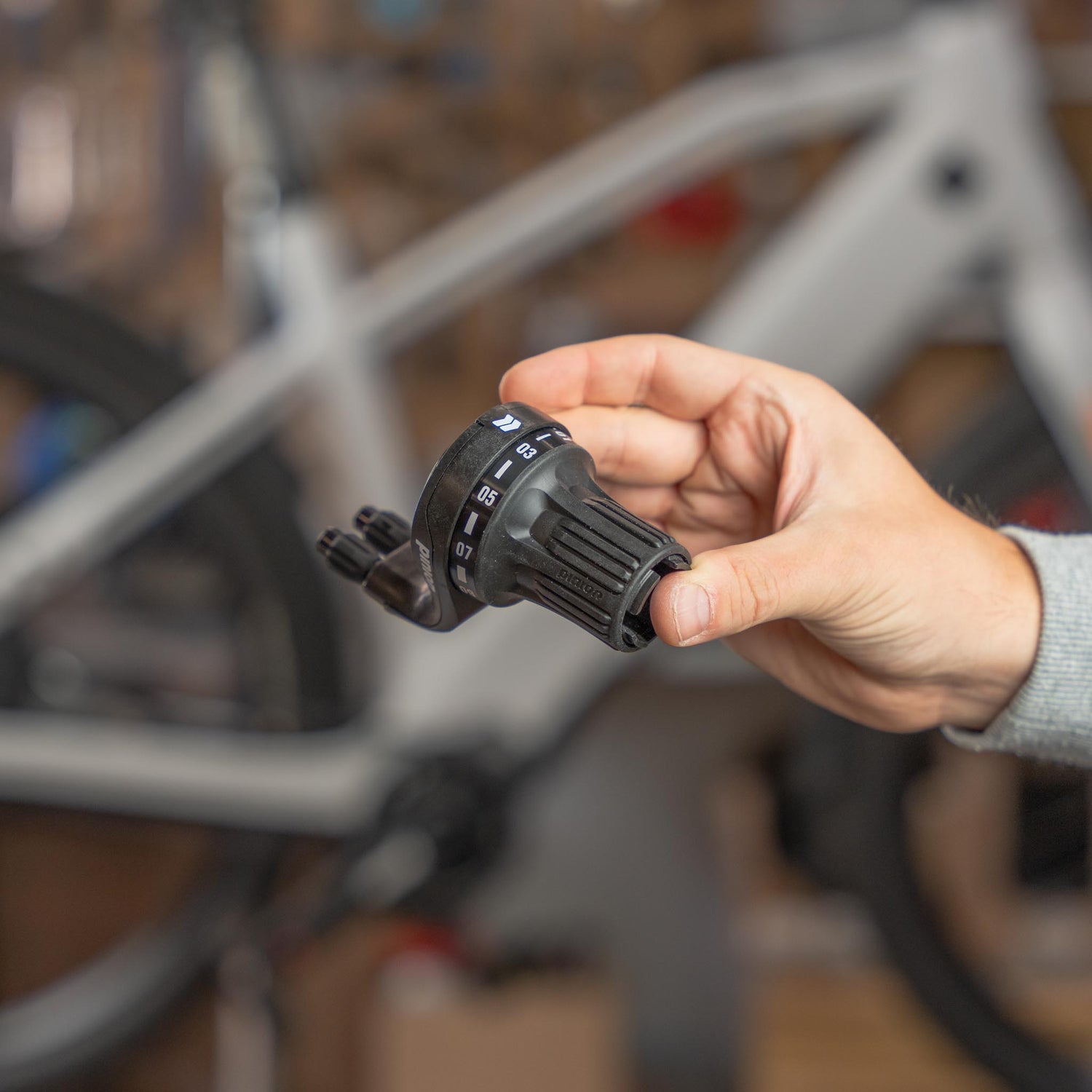 The black Pinion DS2.9 twist grip, designed for Stromer's ST3 Pinion model, provides a precise and smooth gear shifting experience.